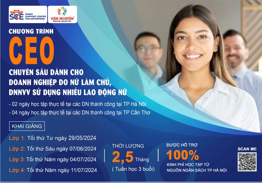 Thấu hiểu thách thức của thời đại và trăn trở của các nhà lãnh đạo, các CEO, cấp quản lý đang gặp khó khăn trong việc quản trị, điều hành doanh nghiệp nhỏ và vừa do nữ làm chủ, DNNVV sử dụng nhiều lao động nữ trong thời kỳ nhiều biến động, Trung tâm Hỗ trợ doanh nghiệp Hà Nội - Sở KH& ĐT Hà Nội đã phối hợp với Học viện doanh nhân Vân Nguyên Edubiz và Trung tâm Viện công nghệ Châu Á tại Việt Nam (AITCV) xây dựng và triển khai chương trình: “Đào tạo trực tiếp quản trị doanh nghiệp chuyên sâu về kiến thức Giám đốc điều hành doanh nghiệp (CEO) cho doanh nghiệp nhỏ và vừa do phụ nữ làm chủ, DNNVV sử dụng nhiều lao động nữ” trên địa bàn TP Hà Nội. Chương trình bao gồm đội ngũ giảng viên, chuyên gia có kiến thức và kinh nghiệm về từng chuyên đề giảng dạy. Cùng với việc học trực tiếp các chuyên đề trên lớp, học viên được thăm quan học tập thực tế tại các tập đoàn lớn tại Hà Nội và TP Cần Thơ, TP Đà Nẵng thuộc Top 500 doanh nghiệp lớn ở Việt Nam. Chương trình được hỗ trợ 100% học phí từ nguồn Ngân sách thành phố Hà Nội.