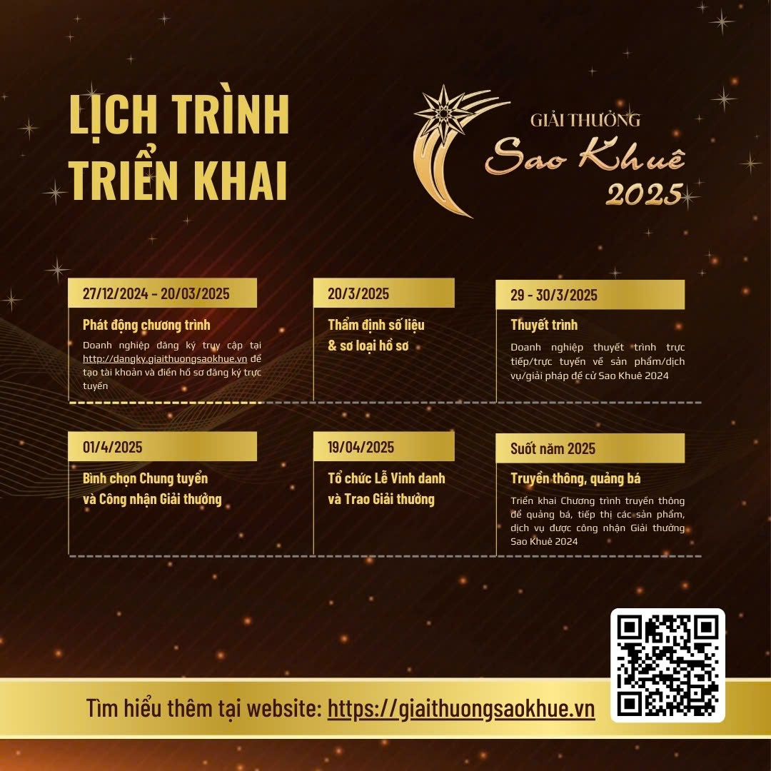 ➢ 29-30/03/2025: Các đơn vị thuyết trình trực tiếp/trực tuyến về sản phẩm/dịch vụ/giải pháp đề cử Sao Khuê 2025
